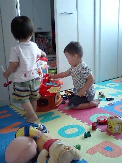 授業中、ちびっこたちは仲良くオモチャで遊んでました。