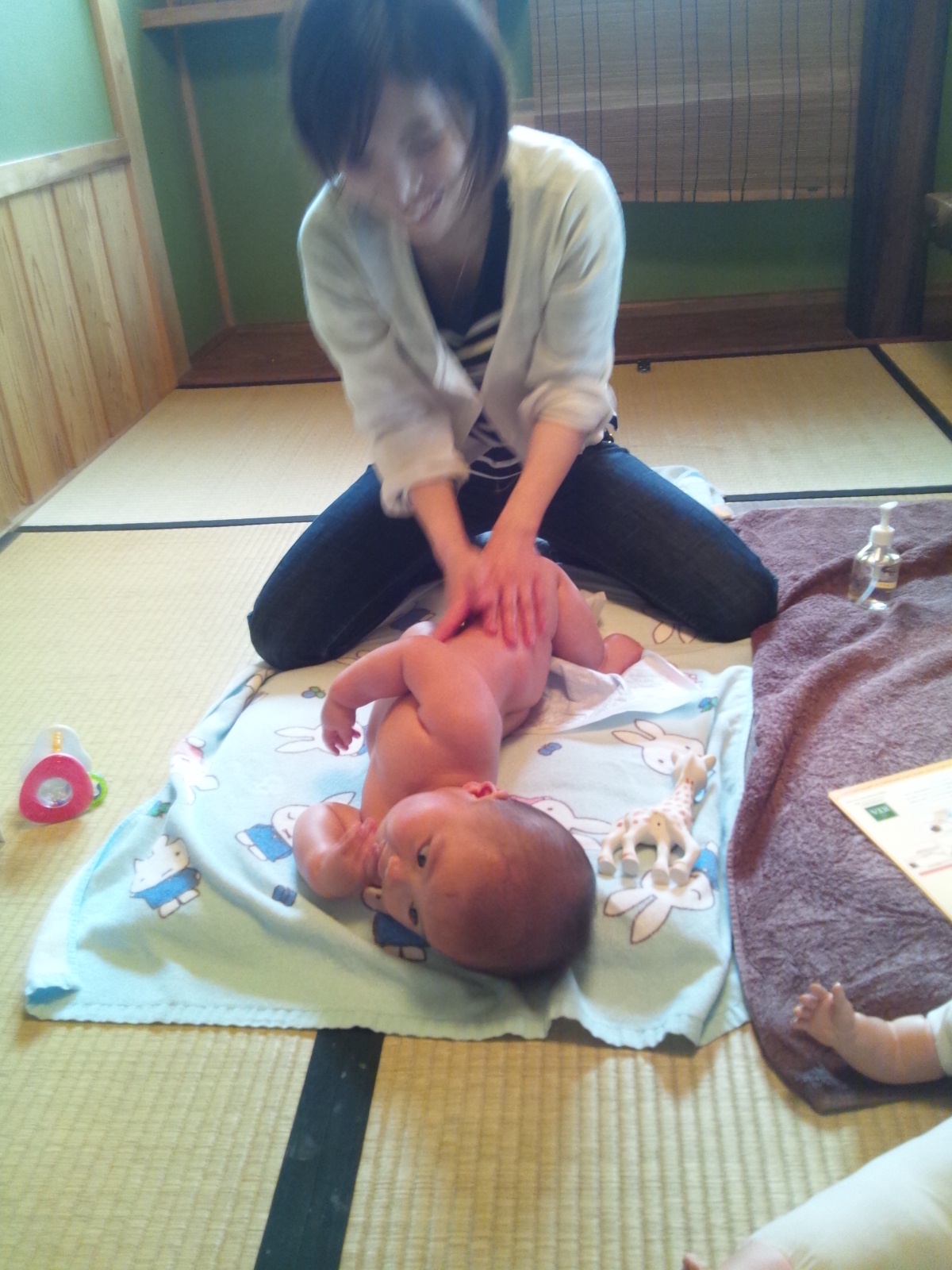 ママが、ベビちゃんを追いかけながらのマッサージでした。